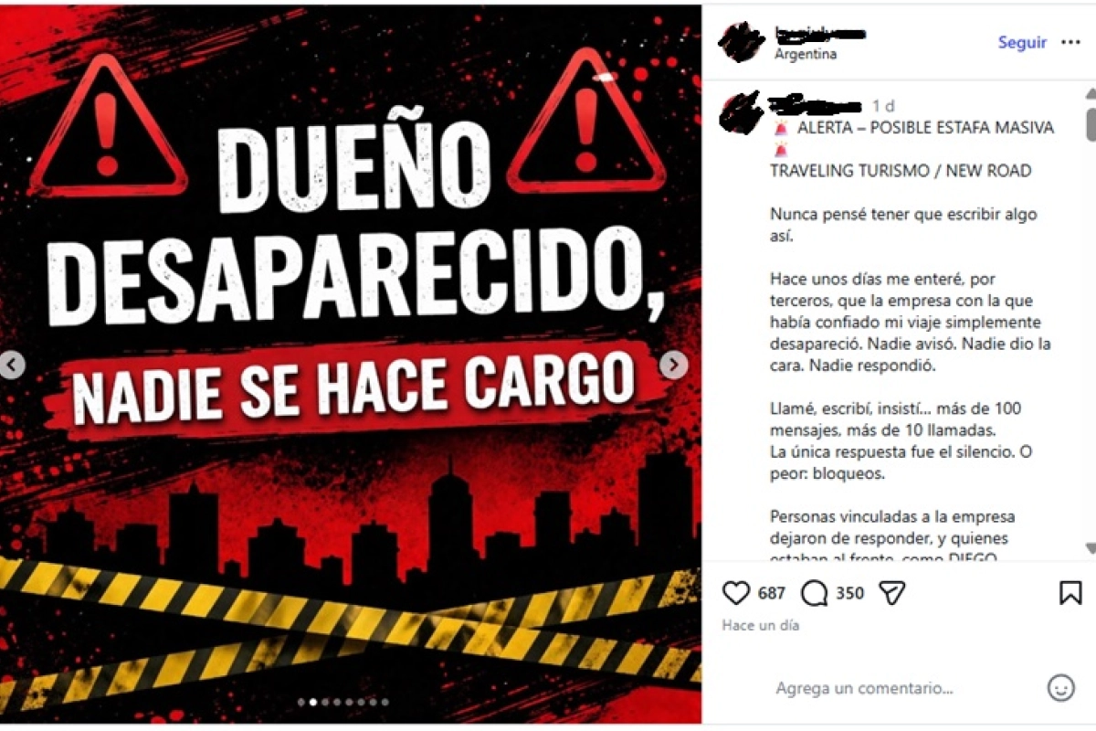 Apuntan contra Traveling Turismo y su firma vinculada New Road. Ofrecían paquetes a bajo costo, dejaron de responder y ahora enfrentan denuncias por una presunta estafa millonaria.